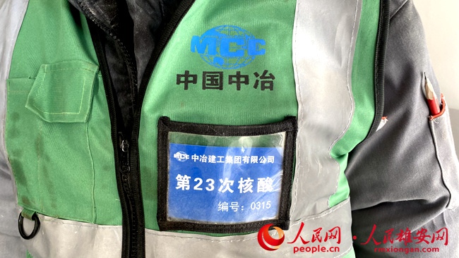 容西安置房B2標段的建設者胸前都帶有核酸檢測次數標識。人民網 劉師豪攝