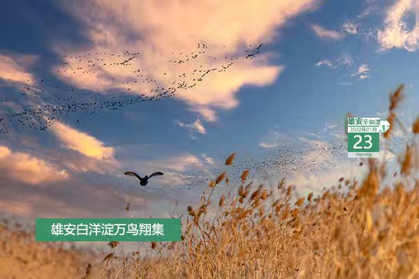 今天是2022年1月23日,星期日,天氣陰,-4℃~1℃。在封面和大家見面的是雄安白洋淀萬鳥翔集的景象。