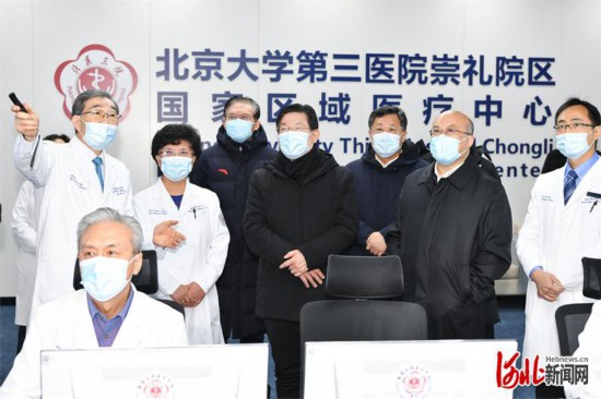 1月23日,省委書記、省人大常委會主任王東峰到張家口市崇禮區調研檢查。這是王東峰、王正譜在北京大學第三醫院崇禮院區詳細了解醫院情況。河北日報記者趙海江攝