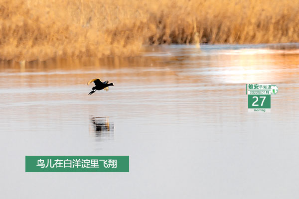 今天是2022年1月27日,星期四,天氣晴,-6℃~3℃。在封面和大家見面的是在白洋淀里飛翔的鳥兒。