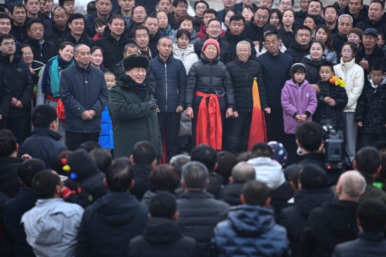 1月26日,山西省臨汾市汾西縣僧念鎮段村,天空一直飄著點點雪花,黃土地的冬日風光別樣動人。瑞雪兆豐年,今年62歲的村民蔡文明,迎來了前來考察的習近平總書記。