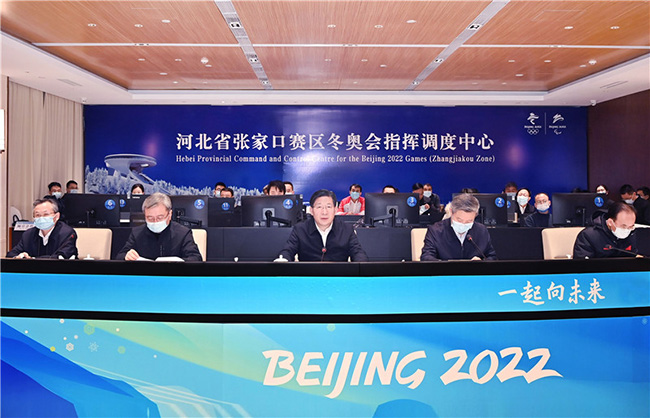 王東峰提出十點要求。一要精心高效組織好涉賽人員入住,切實做到環環相扣、高效快捷。細化實化機場接站、交通轉運、服務區停留、酒店入住等環節,超前做好銜接工作,確保各類涉賽人員安全順暢入住。二要全面防控疫情,堅決防止“脫環”“破環”和交叉感染。嚴格落實“雙閉環”管理措施,優化核酸采樣流程,堅決防止發生人員聚集和“脫環”“破環”等現象。對發現的陽性感染者,嚴格按照《防疫手冊》進行隔離和診治,堅決杜絕交叉感染。三要科學組織觀眾觀賽,創造井然有序的觀賽環境。加大交通疏導力度,優化觀眾進出場館流程,通過溫馨提示等方式,引導觀眾全程佩戴口罩,做好自我防護。四要積極支持配合開閉幕式工作,營造歡樂喜慶的冬奧氛圍。按照北京冬奧組委要求,立足張家口賽區實際,精心組織涉賽人員參加開閉幕式,講好中國故事,展示河北文化元素,彰顯燕趙兒女喜迎冬奧熱情。五要堅持人防物防技防相結合,全面提升安全保衛工作水平。進一步完善安全保衛工作方案,聚焦重點線路、重點區域、重點時段,加大安保巡查力度,健全智能化安保系統,確保賽事安全萬無一失。六要全力做好各項服務保障工作,提供優質高效服務。逐項檢查水電氣訊暖安全穩定運行情況、涉賽人員用餐情況、食材全流程監管情況、志愿服務情況等,充分聽取意見建議,不斷提升服務水平。七要全面優化交通服務流程,嚴格規范管理制度。根據交通出行需求,充足配置交通保障車輛,科學進行調配,確保涉賽人員順利高效通行。八要加大宣傳報道力度,凝聚強大正能量。整合各級各類媒體資源,創新宣傳方式方法,加大輿情引導力度,切實講好中國故事、冬奧故事、河北故事。九要做好信息報送工作,提升規范化、制度化水平。嚴格落實重大信息報告制度,健全“臺賬式”“清單式”管理,確保重大信息上下貫通。十要持續優化指揮調度體系,確保高效運行。嚴格執行北京冬奧組委和運行指揮部的規定和要求,確保張家口賽區條塊結合的指揮調度體系無縫對接、運行高效,堅持每日科學調度和高效解決問題,形成上下聯動、狠抓落實的工作合力,為北京冬奧會、冬殘奧會成功舉辦提供有力組織保障。
