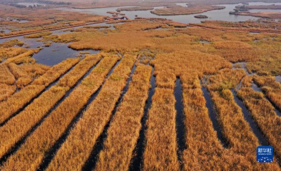白洋淀內的蘆葦蕩(2020年11月5日攝,無人機照片)。新華社記者 牟宇 攝