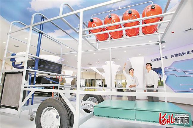 位于張家口市的億華通公交車氫燃料電池發動機系統模型。 河北日報資料片