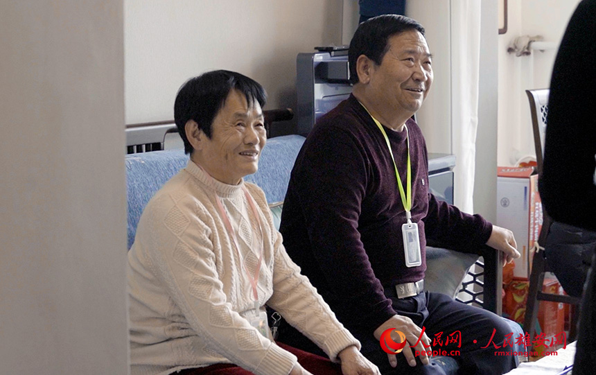 趙友柱與老伴肖友坤胸前掛著公交卡,剛回到家,正與家人談論當天的見聞,臉上洋溢著幸福的笑容。人民網 宋燁文攝