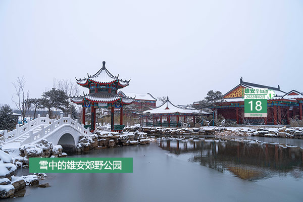 今天是2022年2月18日,星期五,天氣多云,-7℃~4℃。在封面和大家見面的是雪中的雄安郊野公園。