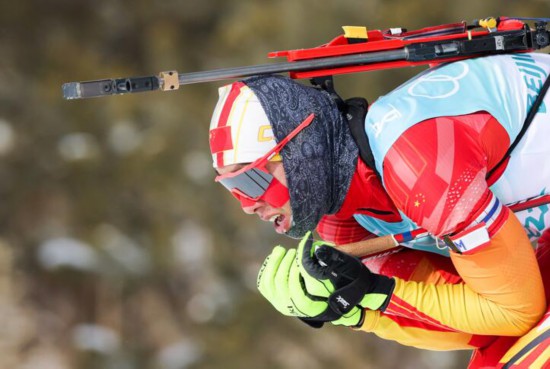 2月15日,中國隊選手閆星元在北京冬奧會冬季兩項男子4×7.5公里接力比賽中。 新華社記者丁汀攝