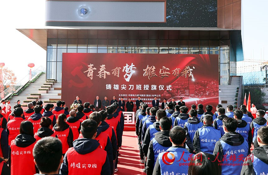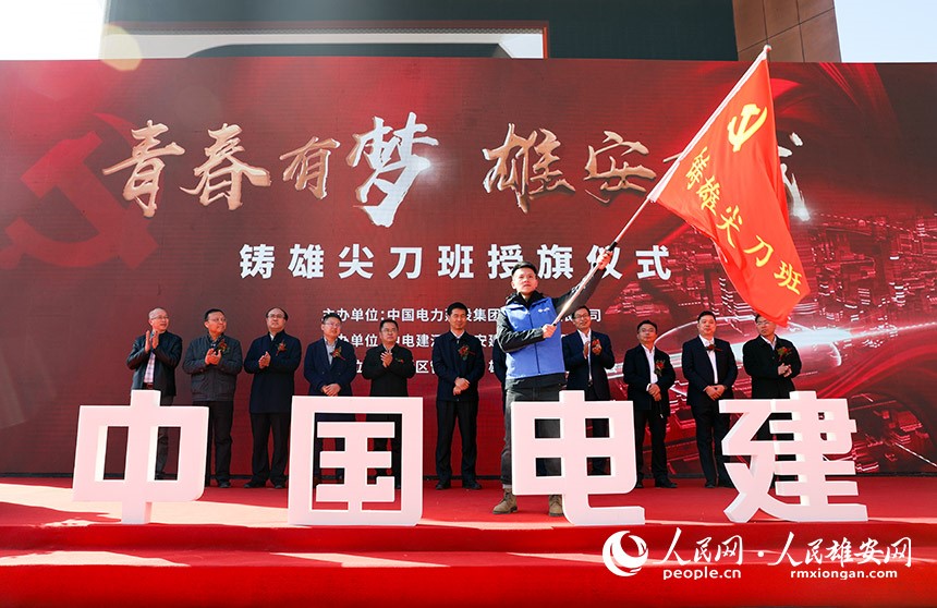人民網雄安3月3日電 (宋燁文)“我宣誓,我們是光榮的鑄雄‘尖刀班’成員……”3月2日,“青春有夢 雄安有我”鑄雄“尖刀班”授旗儀式在雄安·容東智慧體驗中心舉行。雄安新區黨工委副書記、管委會常務副主任,雄安集團黨委書記、董事長田金昌,中國電力建設集團有限公司黨委副書記李燕明出席活動。