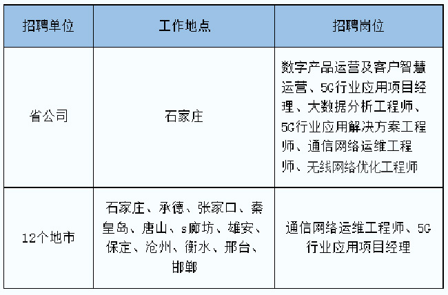 崗位詳情請登錄:http://zhaopin.he.chinamobile.com