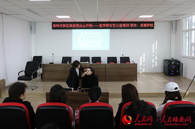 雄安新區容城縣委宣傳部8日組織開展“新時代新區新女性從心開始”公益培訓,邀請卓越技工學校講師李曉敏、張云緹為大家講解彩妝、護膚相關知識。講座中,兩位講師圍繞著日常護膚的意義、皮膚的護理、常用的化妝技巧、化妝工具與材料等展開了授課,并現場進行彩妝效果演示,現場解答了大家在皮膚保養及彩妝方面的疑問。