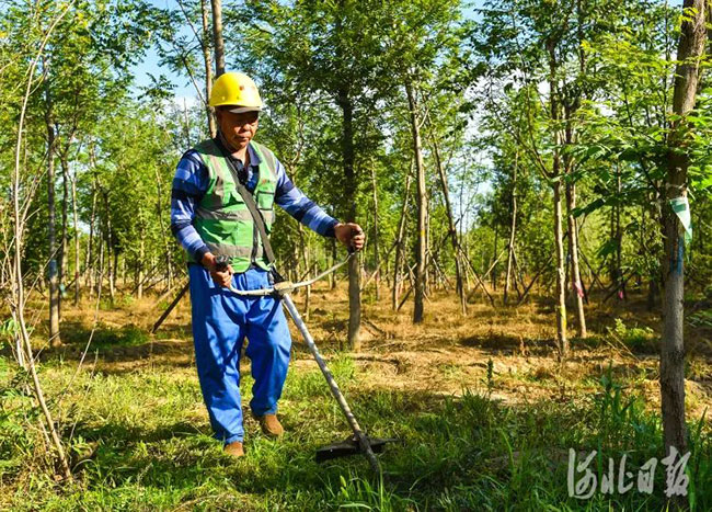 2021年6月19日,雄安新區千年秀林護林員邸永華正在鋤草。河北日報記者耿輝 攝