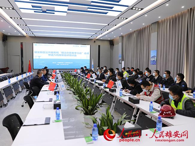 人民網雄安3月16日電 (王紅)為進一步抓緊抓實根治欠薪工作,雄安新區公共服務局3月16日在容東片區召開“根治欠薪春季行動”走進中建八局政策宣講培訓會,圍繞根治欠薪、農民工工傷保險繳納工作進行政策宣講。