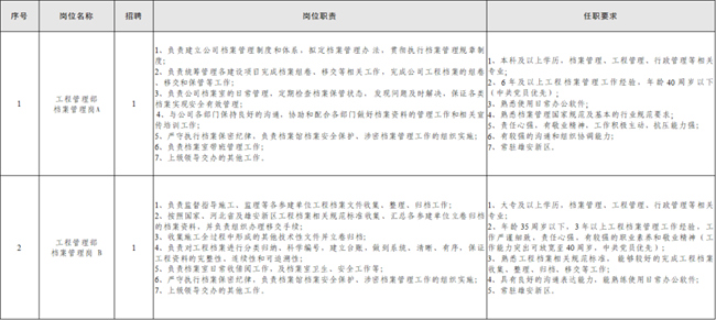 工程管理部檔案管理崗A 1名