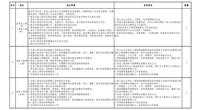 此次招聘崗位分別為1名副總工程師,1名市政工程師,1名土建工程師,1名建筑工程師,1名電氣工程師,1名給排水暖通工程師,1名信息化工程師(弱電工程師),1名造價工程師(土建),1名造價工程師(安裝),1名法務專員。有意者可于3月31日前將簡歷發送至郵箱bjfuxiongan@163.com。聯系電話為010-62338853,010-62338181。