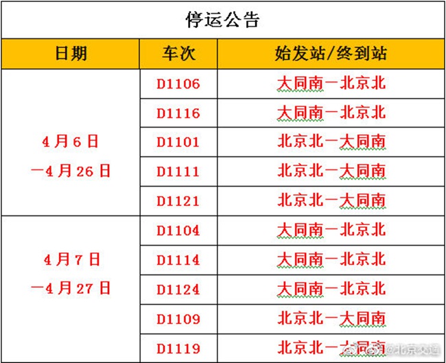 2、根據疫情防控有關要求,北京北站始發、終到部分旅客列車停運。已購買停運列車車票的旅客,可于30日內辦理全額退票手續。請廣大旅客及時關注車站公告或中國鐵路12306網站信息,妥善安排出行。
