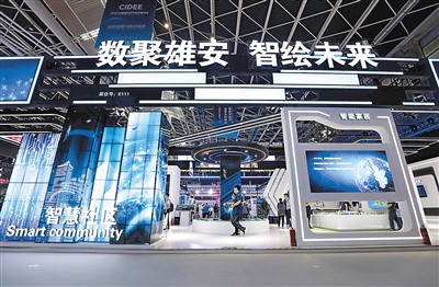 2021年9月6日,參觀者在2021中國國際數字經濟博覽會上參觀“數聚雄安 智繪未來”雄安展區。梁子棟攝(新華社發)