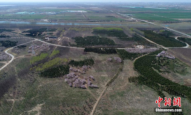 圖為4月2日,航拍雄安新區千年秀林。(無人機照片) 中新社記者 韓冰 攝
