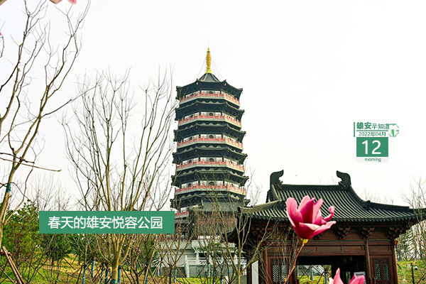 今天是2022年4月12日,星期二,天氣晴轉多云,8℃~19℃。在封面和大家見面的是春天的雄安悅容公園。