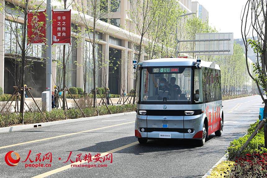 根據規劃,雄安將推進綠色交通出行比例達到90%、公共交通占機動化出行比例達到80%。圖為正在行駛中的“雄安行”電動公交車。陳世豪攝