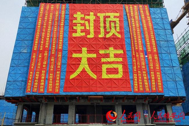 雄安招商·公園1872項目一標段首棟封頂建筑。中鐵十一局供圖