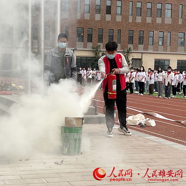 圖為滅火器使用教學。容城縣消防救援大隊供圖