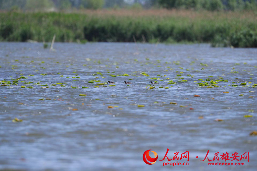 人民網雄安5月25日電 (劉師豪)今天下午,雄安新區安新縣自然資源局巡護人員同河北大學生物多樣性研究團隊、河北省鳥類專家在安新縣圈頭鄉附近水域發現了6只國家一級重點保護野生動物青頭潛鴨。這是繼今年年初安新縣自然資源局工作人員發現青頭潛鴨在白洋淀越冬后,再次記錄到青頭潛鴨的活動蹤跡。