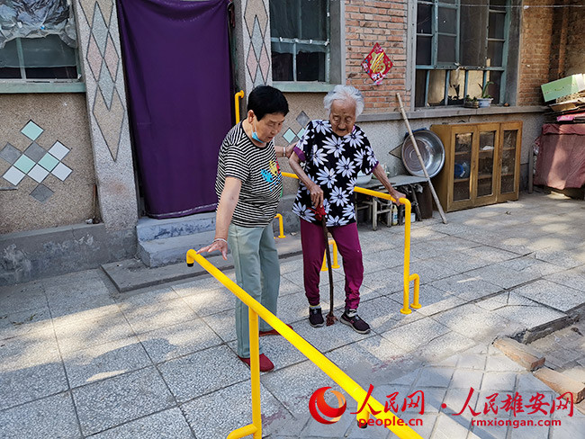 家住孫東軍家不遠處的王大娟也是適老化改造的受益者。今年94歲的王大娟與女兒孫云匣住在一起!澳赣H雖然年紀大了,但是喜歡運動,時不時會到院子里走走。出屋門時因為沒有支撐物,每次都是抓著門簾上下臺階,我真怕哪天一不小心門簾斷了把她摔著!