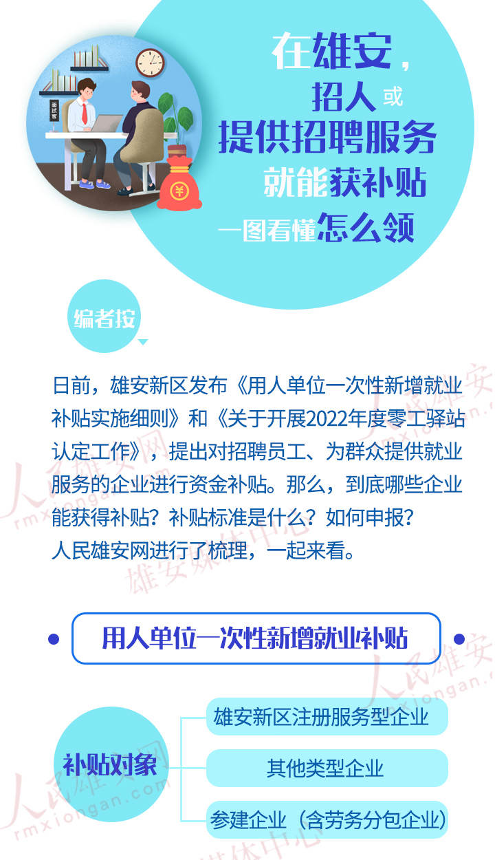 人民網雄安5月28日電 日前,雄安新區發布《用人單位一次性新增就業補貼實施細則》和《關于開展2022年度零工驛站認定工作》,提出對招聘員工、為群眾提供就業服務的企業進行資金補貼。那么,到底哪些企業能獲得補貼?補貼標準是什么?如何申報?人民雄安網進行了梳理,一起來看。
