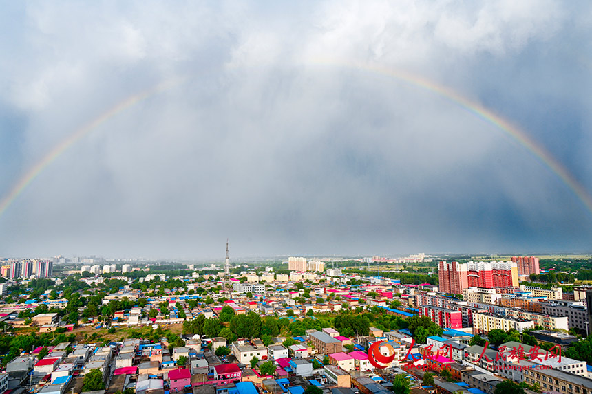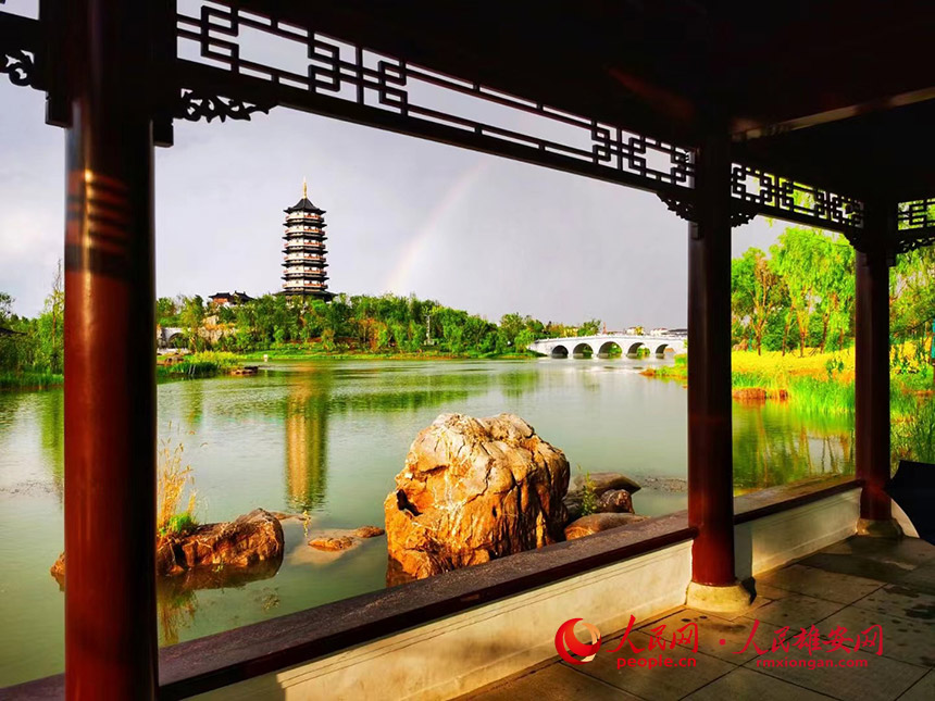 一道“彩虹橋”橫跨雄安天空。胡忠攝