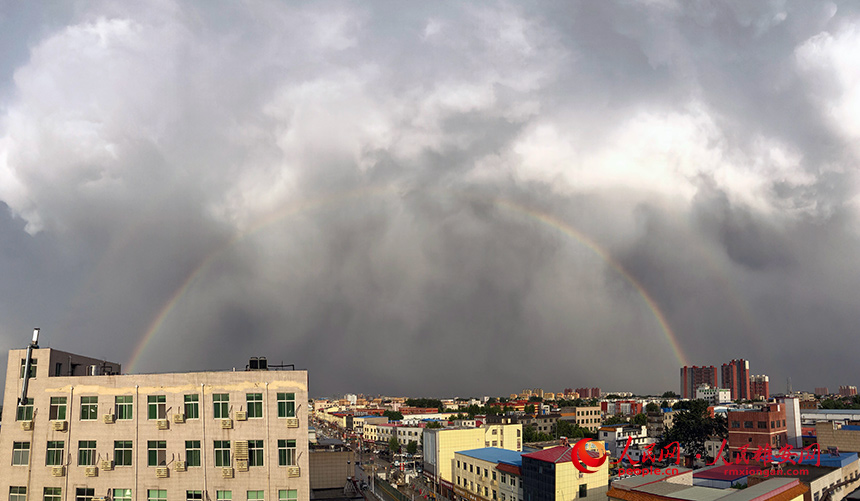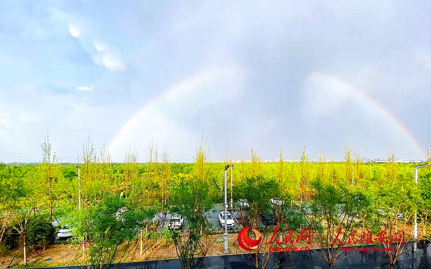 雄安容城縣上空出現“雙彩虹”。胡忠攝