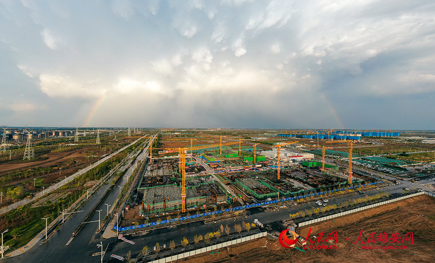 雄安創新研究院科技園項目上空,彩虹穿出云層。任雙歡攝