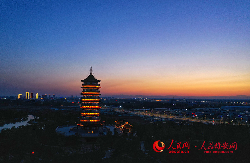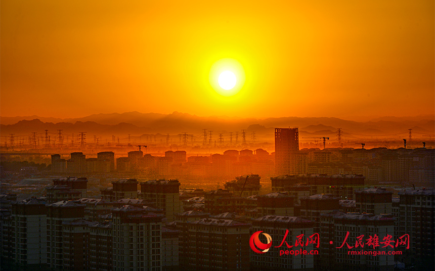 雨后的雄安,夕陽染紅了天空。薛志勇攝
