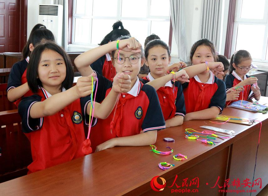 安新小學的學生展示自己制作的手繩。人民網 劉師豪攝