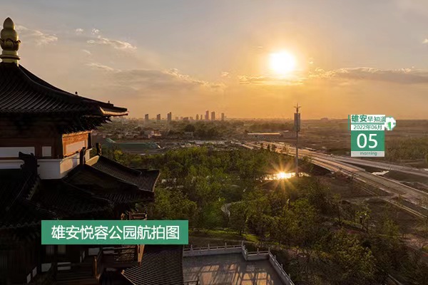 今天是2022年6月5日,星期日,天氣多云轉晴,20℃~34℃。在封面和大家見面的是雄安悅容公園航拍圖。
