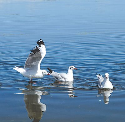 水鳥在青海湖棲息覓食。新華社記者 張 軍攝