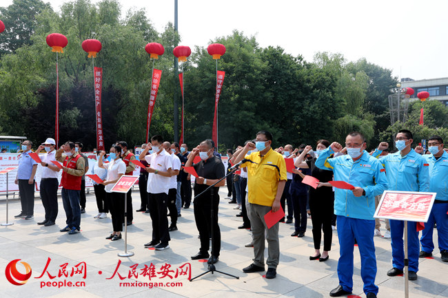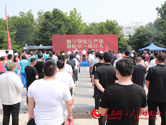 人民網雄安6月16日電 (劉師豪)今年6月是第21個全國“安全生產月”,主題為“遵守安全生產法,當好第一責任人”。雄安新區容城縣16日在新容文化廣場組織開展“安全宣傳咨詢日”活動,旨在進一步提高民眾安全生產意識,有效防范化解各類風險。50家企業代表在現場進行安全宣誓并簽署“第一責任人”安全倡議書。