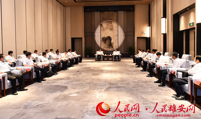 張國華首先代表雄安新區黨工委、管委會對衡水市黨政代表團一行的到訪表示熱烈歡迎,對衡水市近年來經濟社會發展取得的成績表示祝賀,對衡水市一直以來對新區規劃建設發展的大力支持表示感謝。他表示,在省委、省政府的堅強領導下,雄安新區同步推進承接北京非首都功能疏解和大規模開發建設,城市框架全面拉開,城市雛形加快顯現,承接疏解起勢良好。當前,新區上下正全面落實省委十屆二次全會部署要求,解放思想、奮發進取,扎實推進承接疏解、重點片區和重大項目建設、改革創新、生態治理、生物多樣性保護等重點工作。衡水市特色產業發達,水生態和水生物保護工作成效顯著,值得雄安新區認真學習借鑒。希望雙方進一步發揮各自優勢,深化務實合作,不斷開創高質量發展新局面,更好地造福兩地群眾,攜手為經濟強省、美麗河北建設作出更多貢獻。