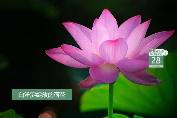 今天是2022年6月28日,星期二,天氣雷陣雨,21℃~29℃。在封面和大家見面的是白洋淀綻放的荷花。