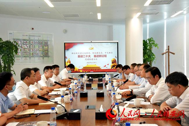 雄安新區建設指揮部黨支部、雄安新區規劃建設局黨總支、中交雄安黨工委6月29日聯合舉辦“喜迎二十大 奮進新征程”黨建聯建活動,重溫入黨誓詞,共上主題黨課。雄安新區建設指揮部黨支部、雄安新區規劃建設局黨總支、中交雄安黨工委還簽署了黨建聯建協議。