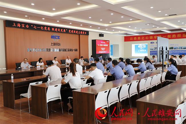 同日,雄安新區雄縣人民檢察院黨支部、雄縣鑫城社區黨支部、上海寶冶雄安區域黨支部聯合舉行了“七一憶黨恩 聯建促發展”聯創共建活動,就政府、社區、企業黨建工作進行了學習交流;顒又,三方黨支部書記共同簽署了黨建聯建協議,并為黨建聯建活動進行揭牌。當天,與會黨員重溫入黨誓詞,開展了黨的十九屆六中全會精神專題學習、法律知識進項目專題黨課以及雄東安置房項目現場觀摩等聯建活動。