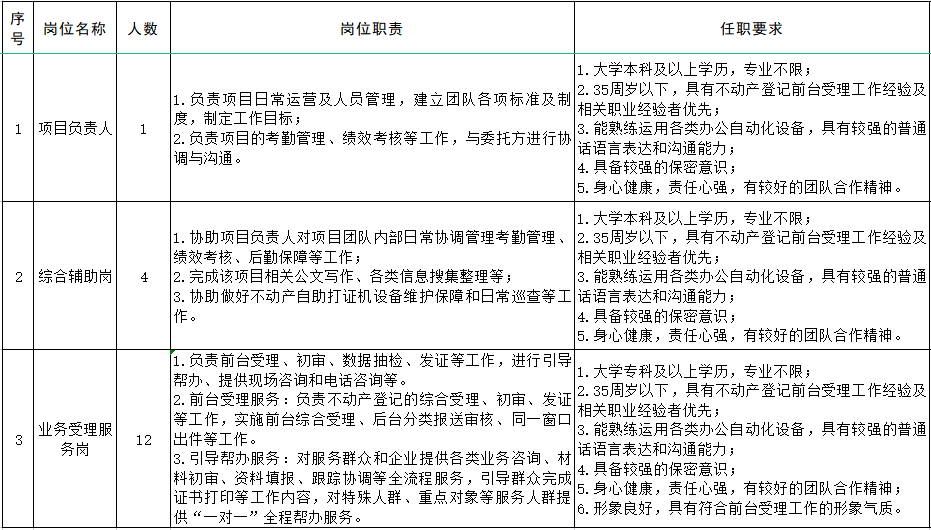 河北雄安人力資源服務有限公司(以下簡稱雄安人力公司)根據工作需要,現面向社會公開招聘業務外包員工,工作地點在雄安新區,從事不動產登記相關工作。