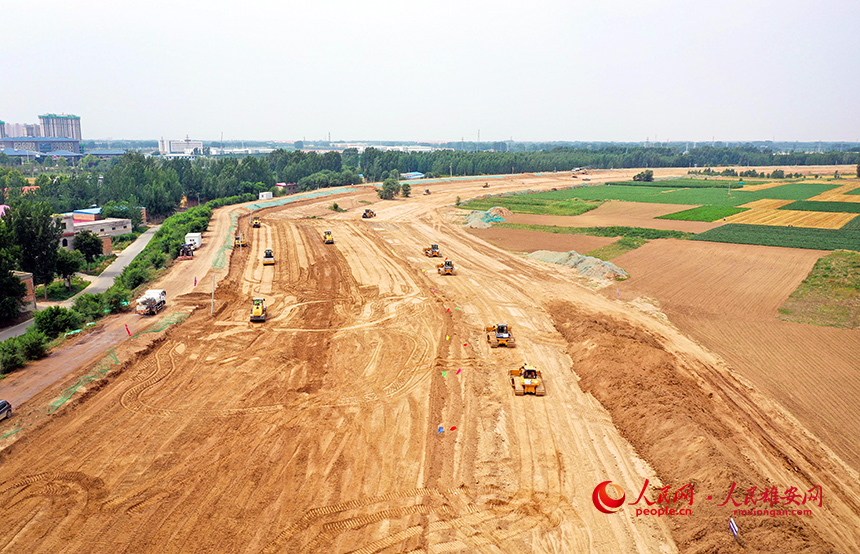 圖為白溝引河與EA1路交匯。白溝引河右堤是雄安新區環起步區最東側堤防。人民網?宋燁文攝