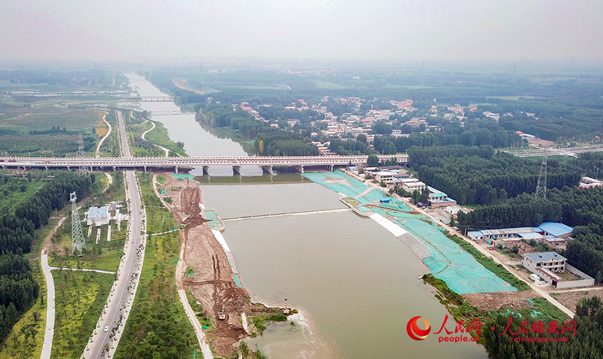 白溝引河左堤治理工程于今年3月開工建設,目前,河道疏浚已基本完成,蓄水壩工程建設已基本完成。人民網?宋燁文攝
