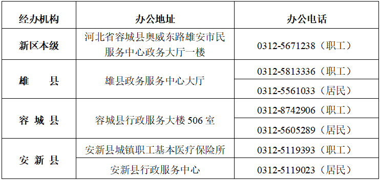 2.新區醫保各經辦機構地址和聯系方式見下表