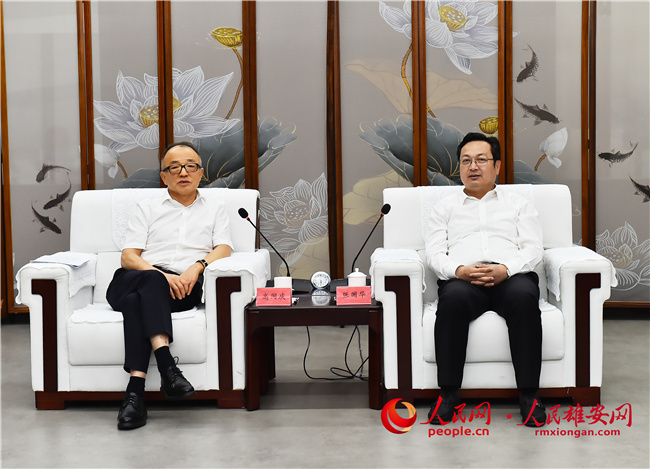 人民網雄安7月19日電 7月18日,中國移動黨組成員、副總經理高同慶一行到雄安新區調研考察。河北省委常委、副省長,雄安新區黨工委書記、管委會主任張國華與高同慶一行舉行工作座談。