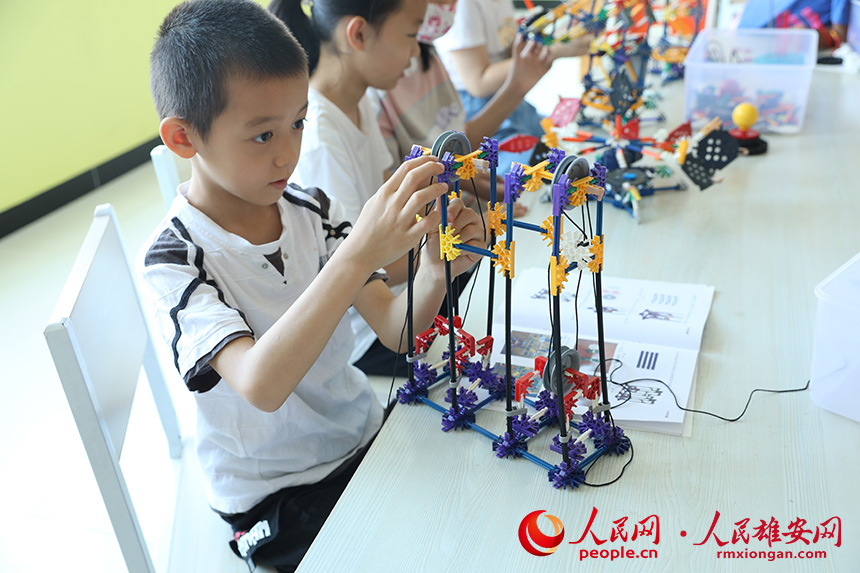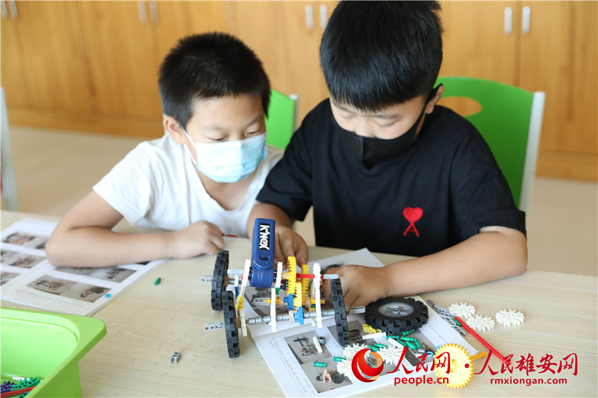 容城縣青少年活動中心內,孩子們在組裝模型。人民網 王紅攝