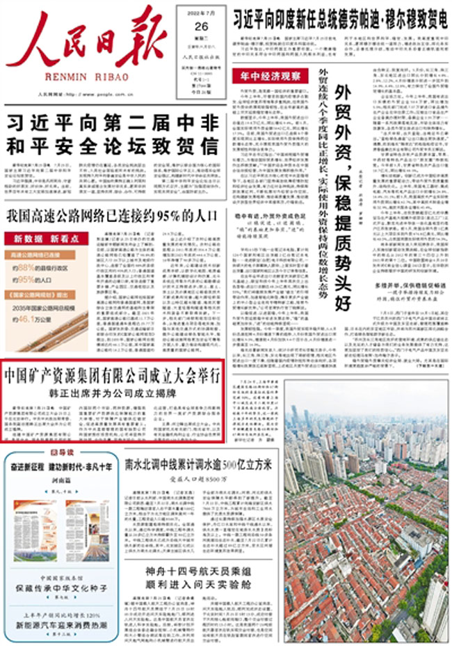 組建中國礦產資源集團有限公司,是黨中央、國務院著眼于用好國內國際兩個市場、兩種資源,增強我國重要礦產資源供應保障能力的重大舉措,對于保障產業鏈供應鏈安全,促進高質量發展具有重要意義。作為中央直接管理的國有獨資公司和國家授權投資機構,公司將堅持開放協同、合作共贏,堅持市場化、法治化運營,打造具有全球競爭力和影響力的世界一流礦產資源綜合服務企業。