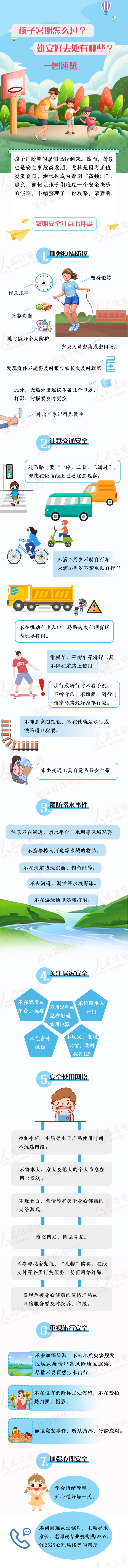 人民網雄安7月26日電 (何美萱)孩子們盼望的暑假已經到來。然而,暑期也是安全事故高發期,尤其是因為正值炎炎夏日,溺水也成為暑期“高頻詞”。那么,如何讓孩子們度過一個安全快樂的假期,小編整理了一份攻略,請查收。
