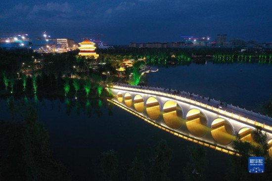 這是河北雄安新區金湖公園夜景(7月28日攝,無人機照片)。