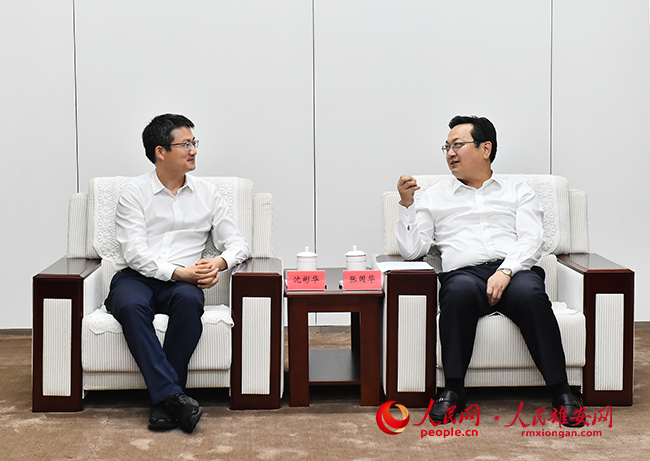 人民網雄安7月31日電 7月31日,北京市委副秘書長、市發改委黨組成員、市協同辦副主任沈彬華一行到雄安新區調研對接并交付北京援建的中學項目。河北省委常委、副省長,雄安新區黨工委書記、管委會主任張國華與沈彬華一行舉行工作座談。